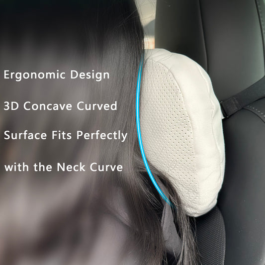 Leather Car Neck Pillow Fits for Teslla All Models - White