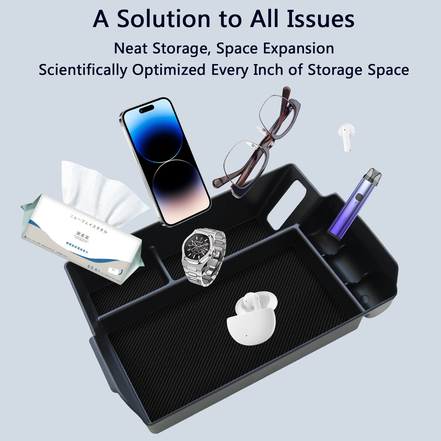- Efficient Storage: Features multiple compartments to easily store small items, helping keep your car tidy,and it can neatly store and place more items, like phones, wallet, sunglasses, change, business cars, and so on.