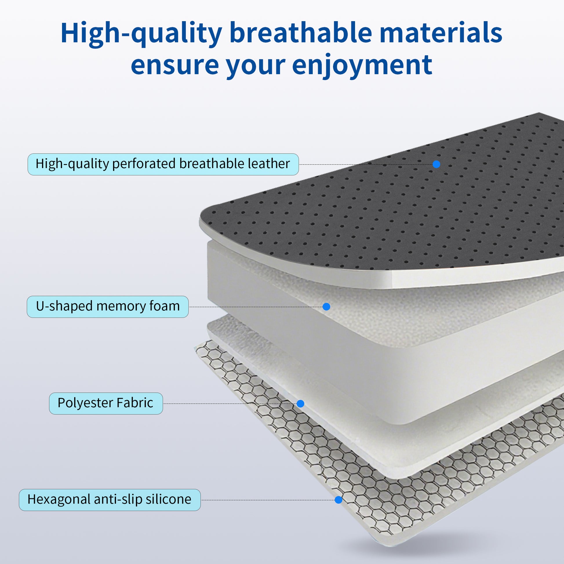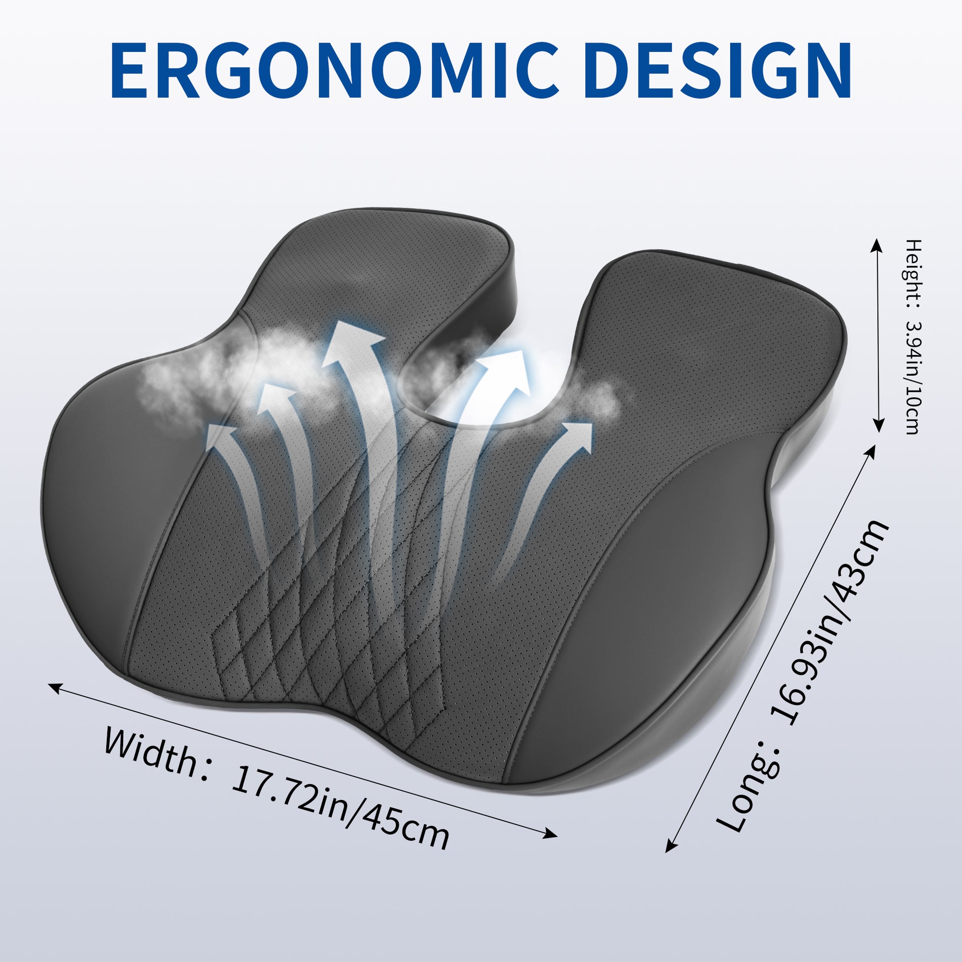 High quality Memory foam:Our office chair cushions are made of 100% pure memory foam.They are soft and firm and use your own body heat to adapt to your curves.The ergonomic "U" shape hollow design provides excellent comfort,effectively supports the tailbone and reduces hip pressure caused by prolonged sitting.