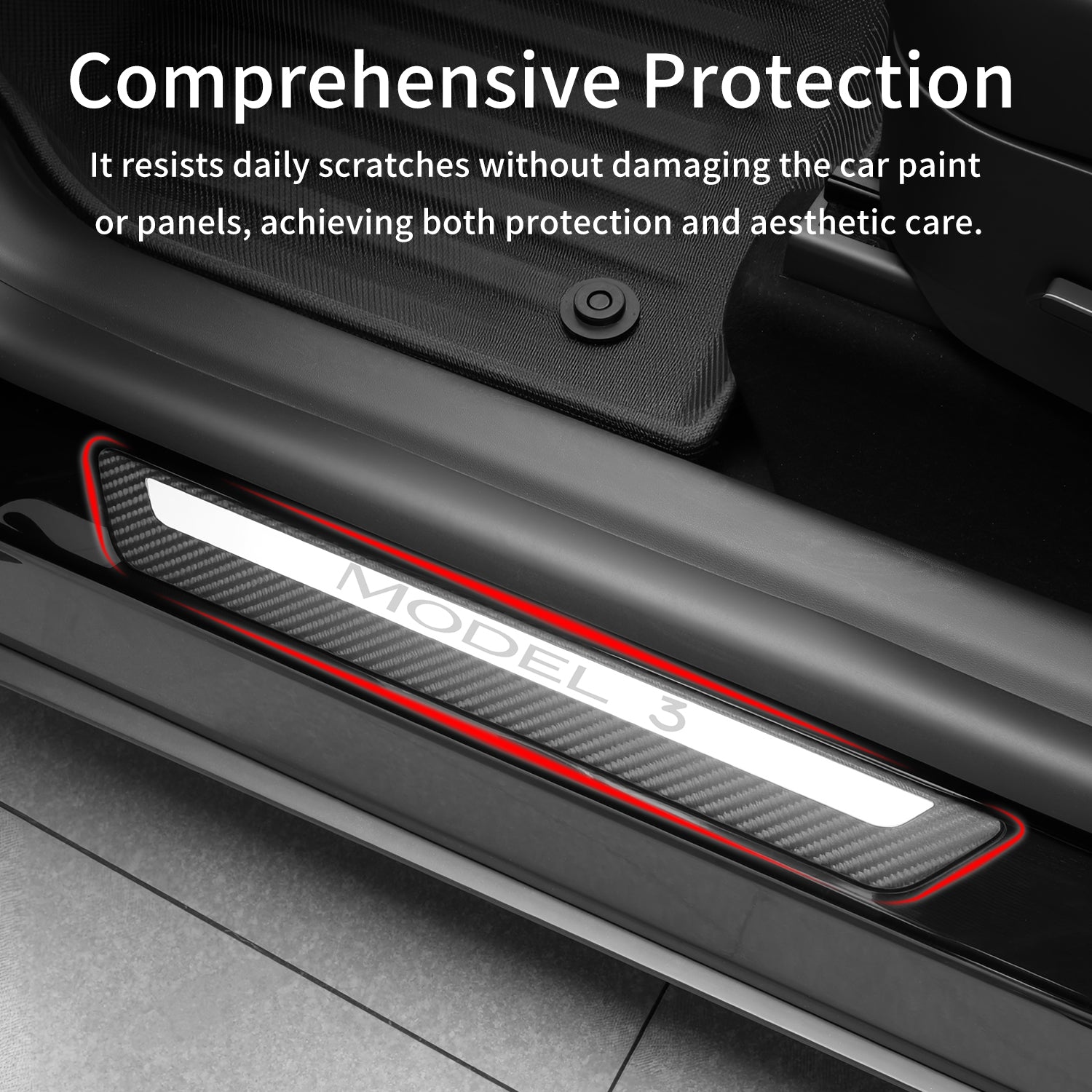 4PCS Door Sill Guards Kit ABS Carbon Fiber Aluminum Alloy Fits for Tesla Model Y/3 Anti-Kick Protection for Your Original Vehicle