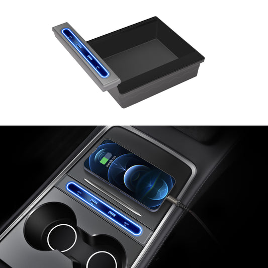 Hub USB avec plateau d'organisateur de console centrale pour le modèle 3 2021-2023 octobre et modèle Y 2020-2024 Prise en charge 27W Charge rapide