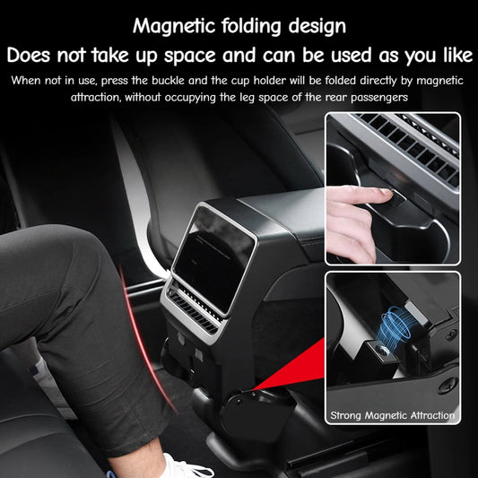 Multi-Functional Foldable Rear Console Cup Holder Organizer for Tesla Model Y Juniper 2025+ & Model 3 Highland 2024+