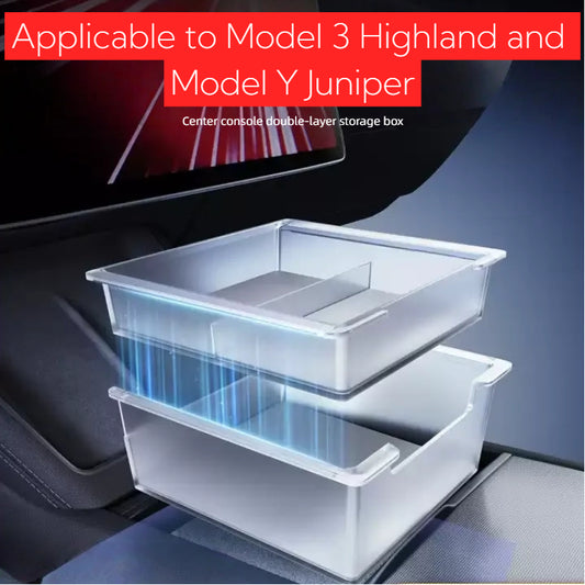 Center Console Double-layer Organizer Storage Box Drawer-style Frosted Material For Tesla Model 3 Highland 2024+ Model Y Juniper 2025+