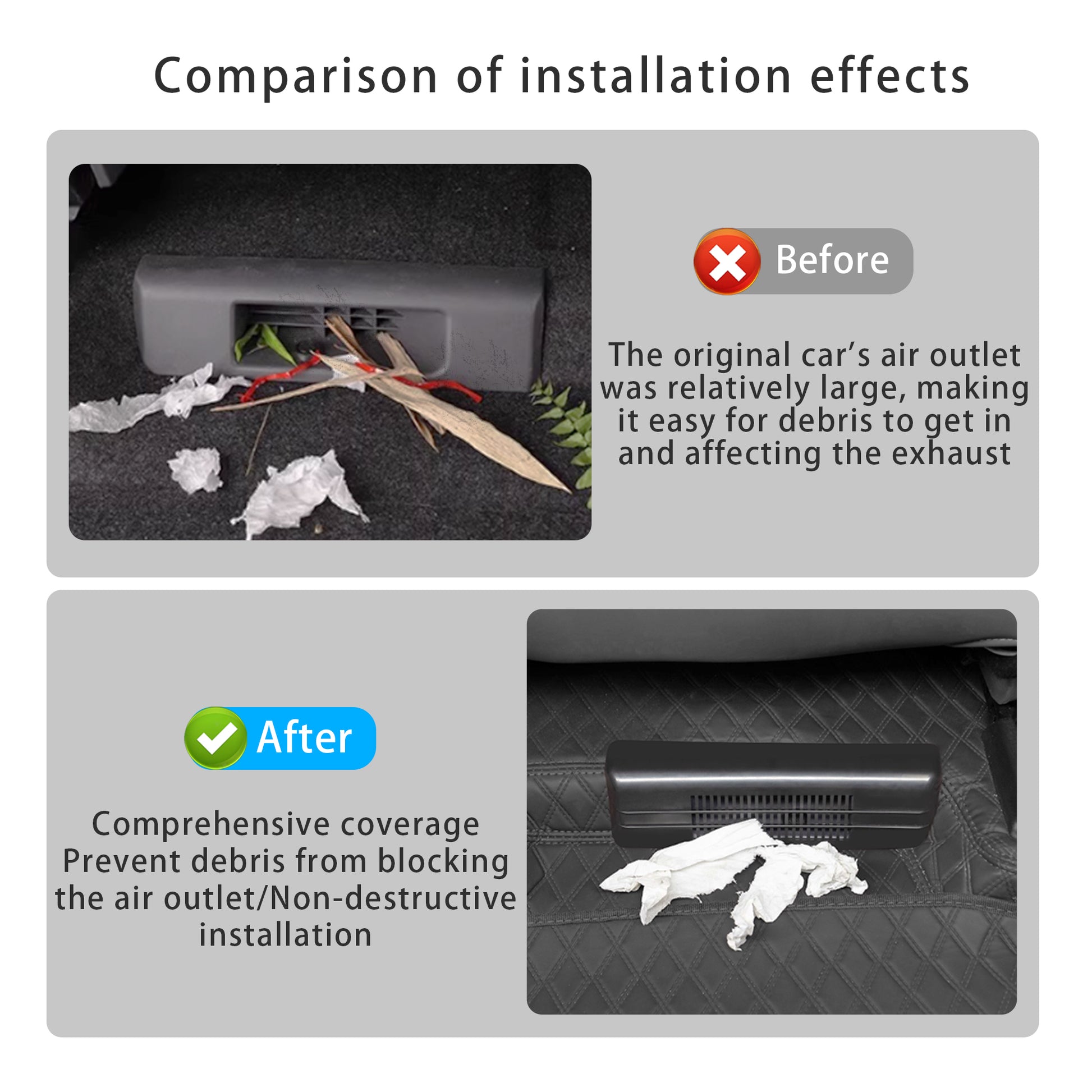 - Enhanced driving comfort: By preventing debris from entering, it lowers the chance of A/C blockages, ensuring optimal cooling and heating performance and delivering a more comfortable ride for everyone in the vehicle.