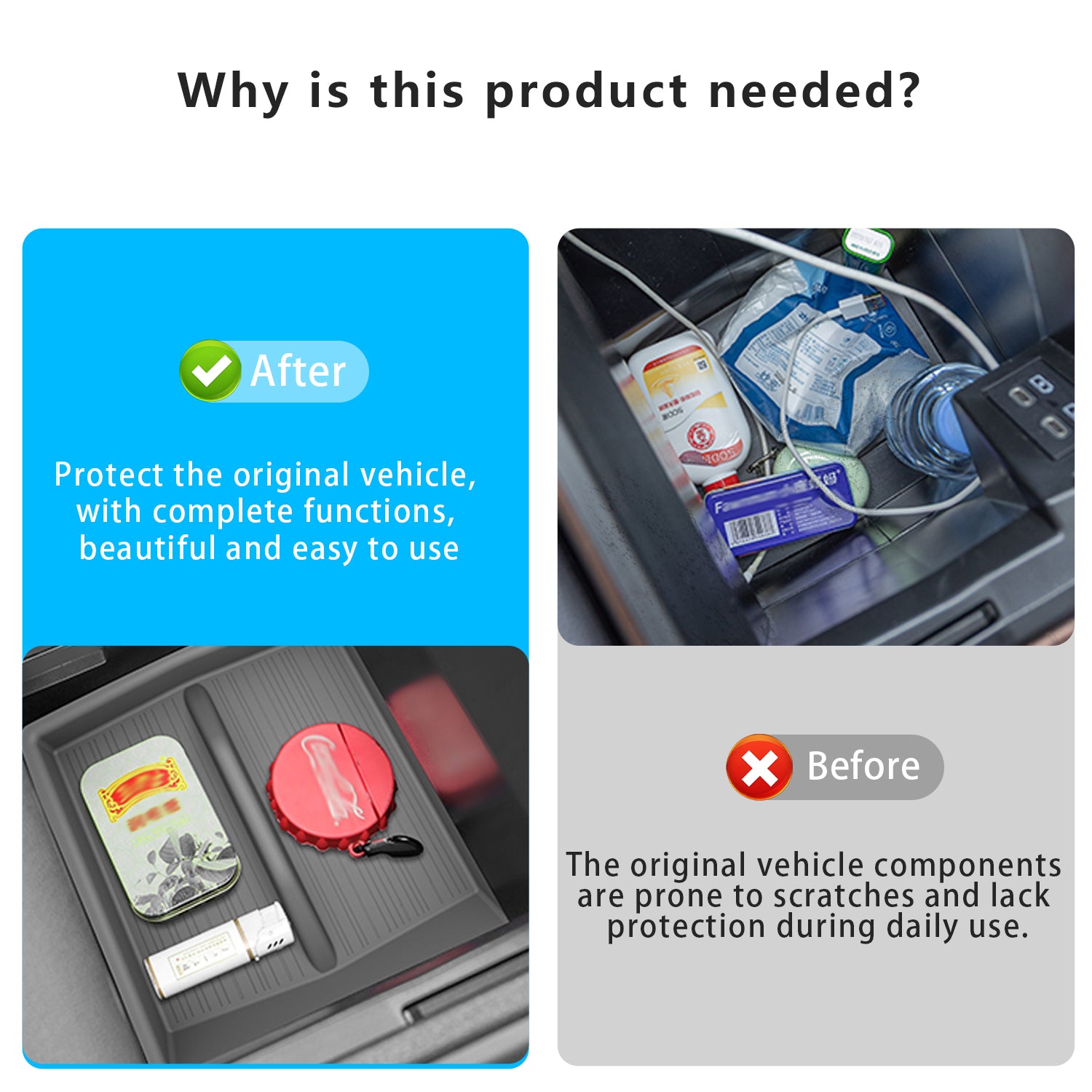 - 【Organization Made Easy】: Designed with several compartments of various sizes to organize and store essential items such as phones, keys, wallets, and sunglasses, helping to keep the car interior tidy and clutter-free.