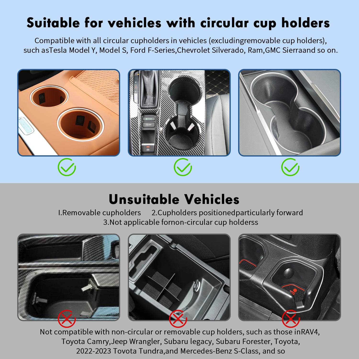 Easy Installation: Requires zero tools for a quick, tool-free setup directly into your car's cup holder.