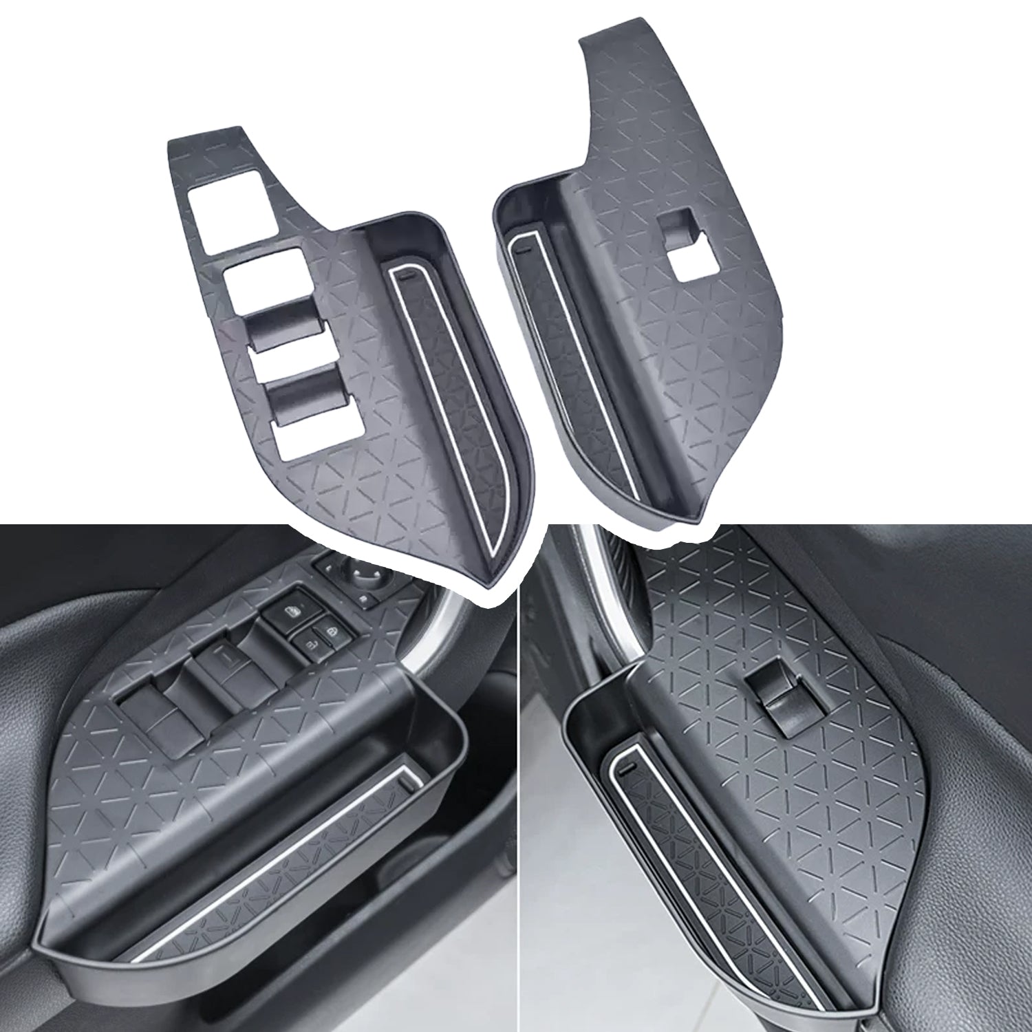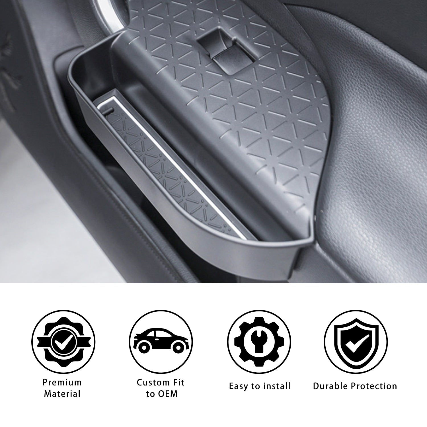 - Snap-In Door-Handle Tray Organizer: Zero tools, zero drama. Seat the Door-Handle Tray Organizer in five seconds; pull the integrated tab to pop it out for a 30-second rinse. No adhesive, no scratches, no broken trim—just pure plug-and-play convenience.