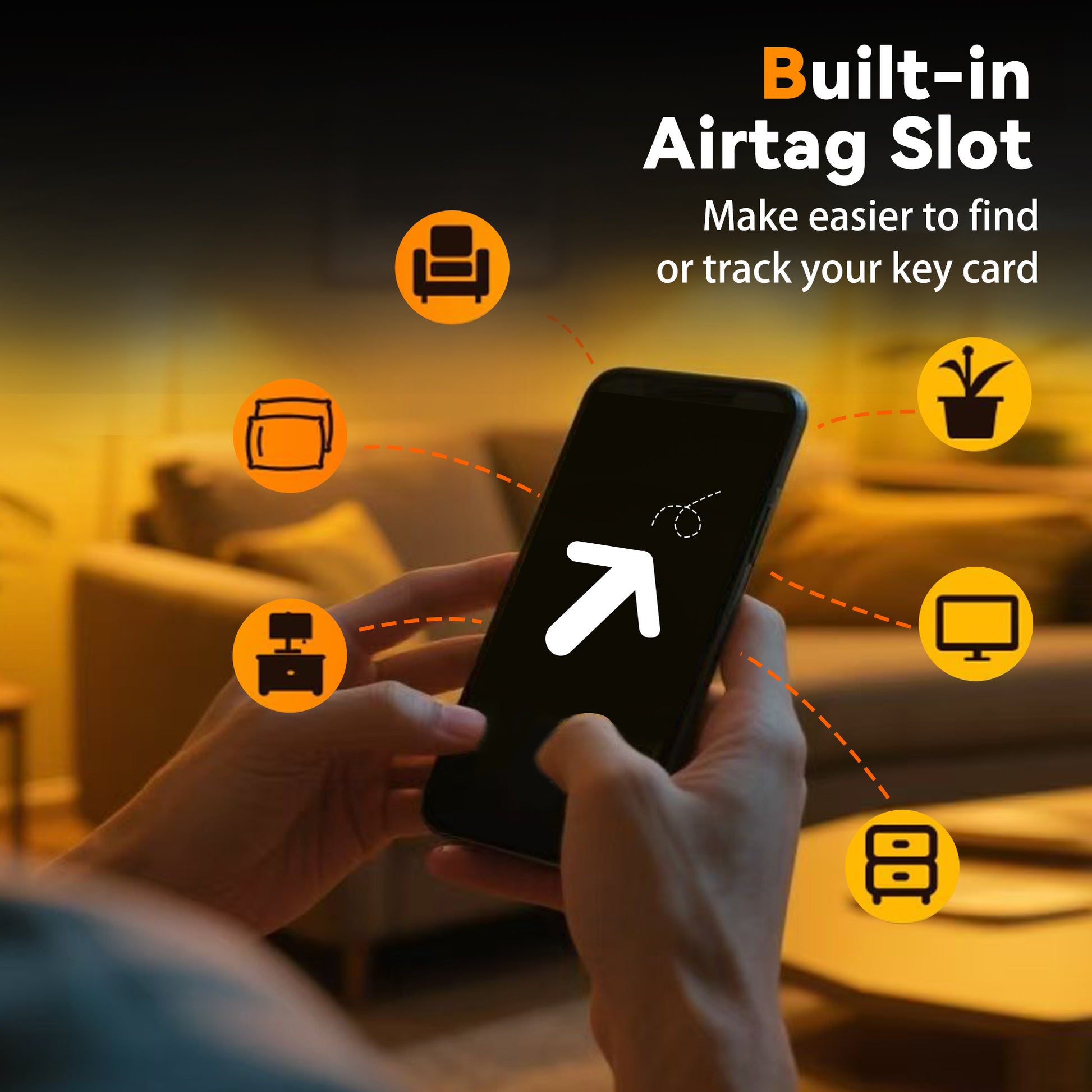 Unique Cutout Design: Features a built-in slot for an AirTag, allowing you to easily track your key card. The open design promotes strong AirTag signals for reliable tracking.